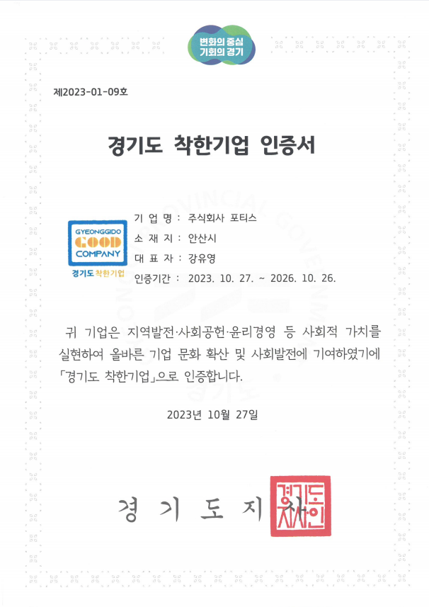 Æ÷Ƽ½º°¡ °æ±âµµ ÂøÇѱâ¾÷¿¡ ¼±Á¤µÇ¾ú½À´Ï´Ù!